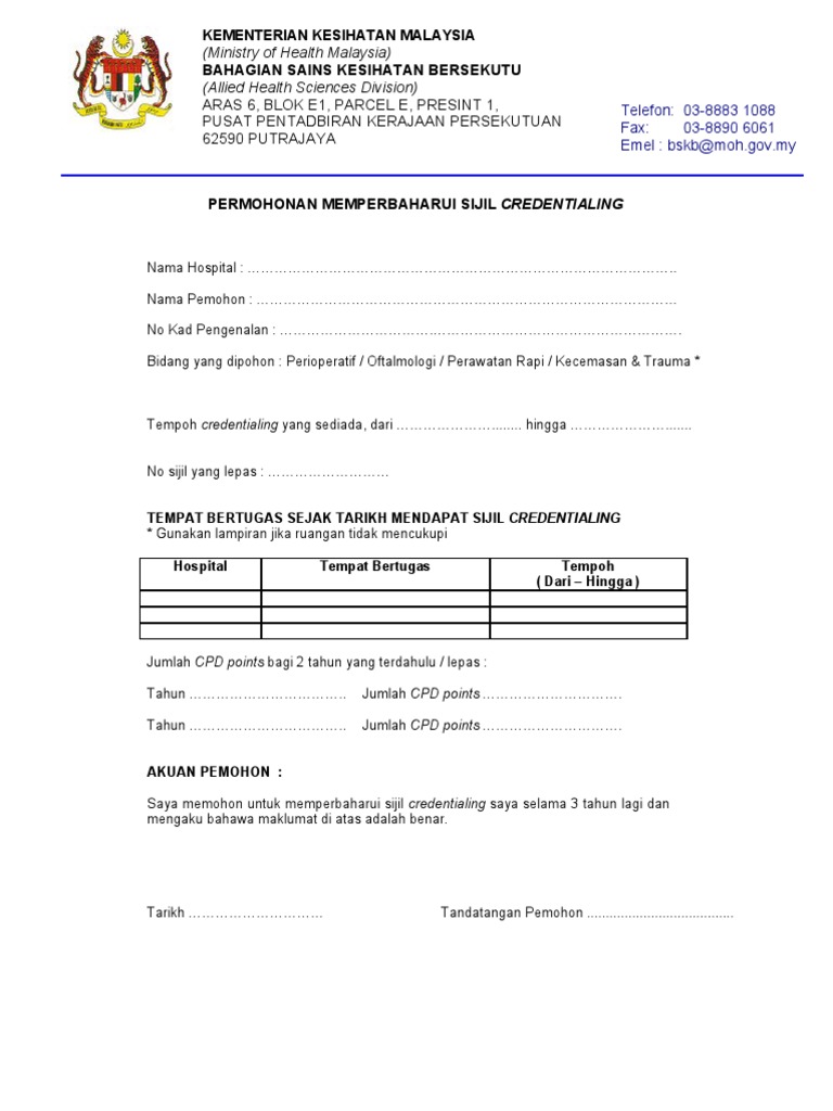 Permohonan untuk kelulusan menubuhkan atau menyenggarakan kemudahan atau perkhidmatan jagaan kesihatan swasta. Muat turun borang pelbagai iklan pemangkuan kenaikan pangkat senarai jawatan ditawarkan petugas haji 2020. Pemohon dinasihati mengisi borang 3 dengan lengkap.