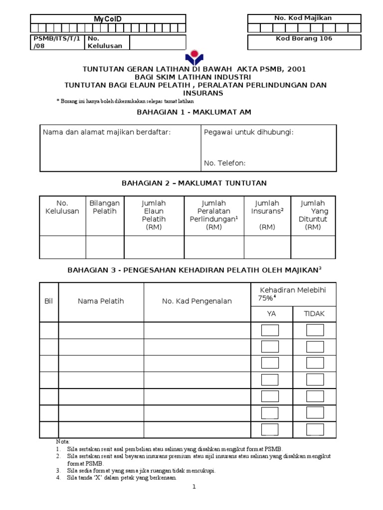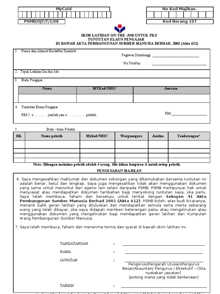 Borang 3 psmb. To register with pembangunan sumber manusia berhad and make levy payment. Majikan hendaklah memberitahu psmb secara bertulis tentang apa apa perubahan mengenai apa apa butir yang diberikan dalam borang 1a tidak lewat daripada tiga puluh hari selepas tarikh berlakunya perubahan itu peraturan 6 peraturan peraturan pembangunan sumber manusia berhad pendaftaran majikan dan pembayaran levi 2001. Employer shall notify pembangunan sumber manusia berhad in writing of any changes in any of the particulars furnished in form 1 and 1a not later than thirty 30 days after the date of occurrence of such change. Financial assistance in the form of training grants may be considered for all types of training programmes tailored to the needs of registered employers.