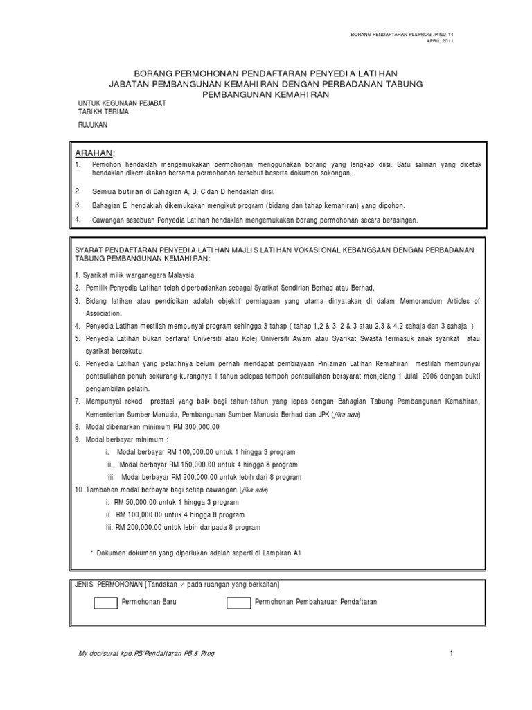 Borang permohonan pembaharuan pda v 201 8 yang lengkap di isi 2. Borang pengisytiharan yang tidak melibatkan apa apa perubahan maklumat syarikat salinan borang d e pendaftaran perniagaan maklumat perniagaan dan maklumat pemilik terkini yang masih berkuatkuasa. Borang permohonan pentauliahan penyedia latihan sicw tr2 renew pin 2 19 diisi lengkap. Salinan borang 9 borang 44 dan borang 49 dalam jenis perniagaan hendaklah termasuk bidang latihan.