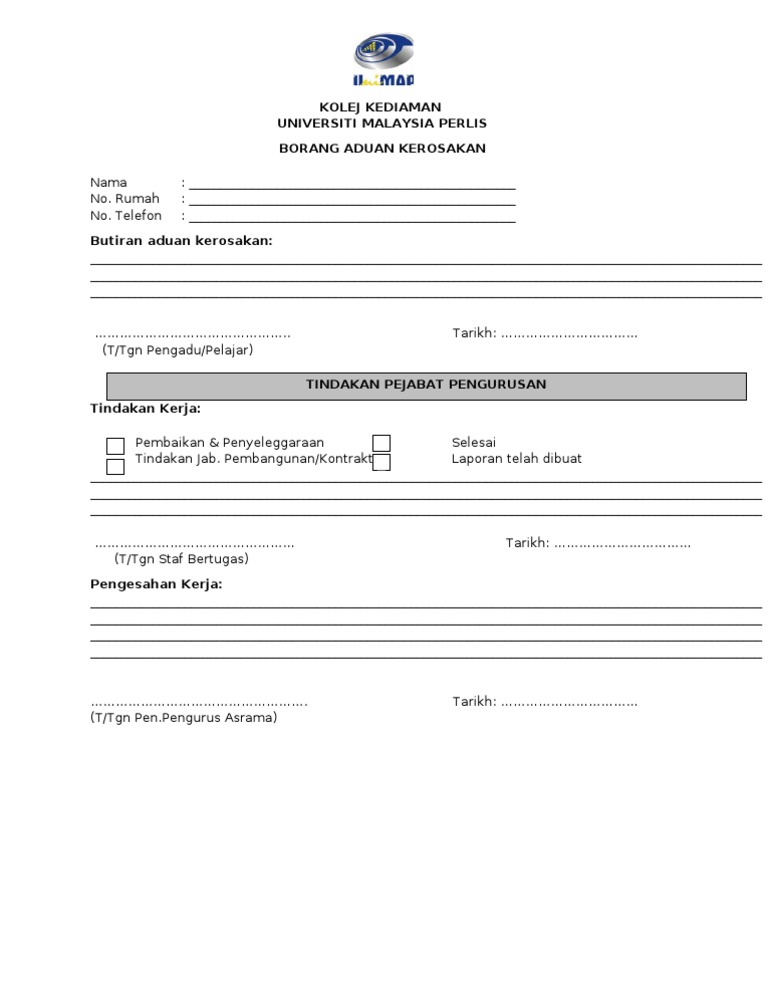 B kerosakan telefon net work kerosakan mekanikal pusat sukan. Anda boleh lampirkan dokumen tambahan berkaitan dengan aduan anda bersama sama borang ini. 04 5758969 borang aduan kerosakan kuarters. Tempat lokasi kerosakan.