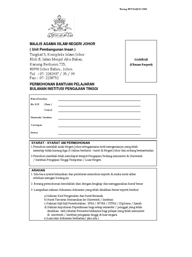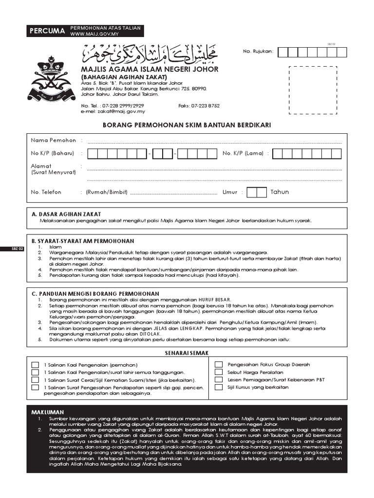 Borang bantuan baitulmal johor. 07 2282900 01 fax. Ramai rakyat yang terkesan dalam usaha melawan penularan pandemik covid 19 iaitu daripada susulan perintah. Permohonan hendaklah menggunakan borang permohonan bantuan zakat asal majlis agama islam negeri johor yang boleh didapati di ibu pejabat majlis agama islam negeri johor tingkat 5 blok b pusat islam iskandar johor johor bahru atau pejabat pejabat agama daerah berhampiran. 07 2237873 07 2239062 emel.