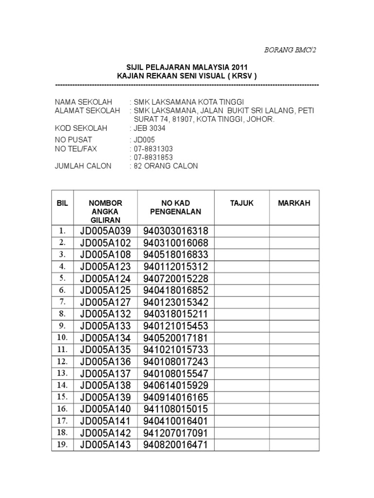 1 17 2011 3 47 00 am company. Sijil pelajaran malaysia pendidikan seni visual 2018 penyelarasan tugasan pentaksiran berasaskan sekolah pbs kajian rekaan seni visual. Borang bmc dan surat krsv author. Types of document.