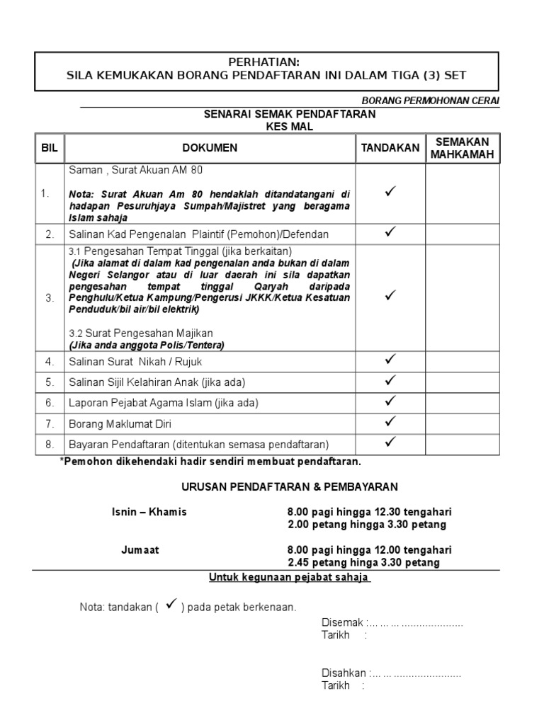 Ii bayar yuran pendaftaran mengikut kadar ketetapan negeri masing masing. Iv terima tarikh dan masa hadir ke mahkamah tarikh untuk suami. Ketua mahkamah agung prof. Borang a b c perkhidmatan jurubahasa asing.