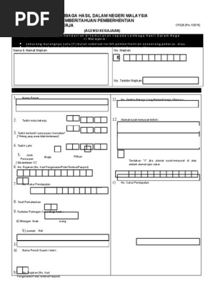 Dalam tempoh enam bulan sebelum seseorang pekerja bersara. Satu salinan borang pemberitahuan ini hendaklah dikemukakan ke lembaga hasil dalam negeri malaysia. Sekurang kurangn ya satu 1 bulan sebelum tarikh pemberhentian seseorang pekerja. Cp22b pin 4 05 permohonan surat penyelesaian cukai pendapatan borang pemberitahu ini hendaklah dikemukakan kepada lembaga hasil dalam negeri dalam empat salinan enam bulan sebelum seseorang pekerja bersara atau secepat mungkin apabila seseorang pekerja itu meninggal dunia no.