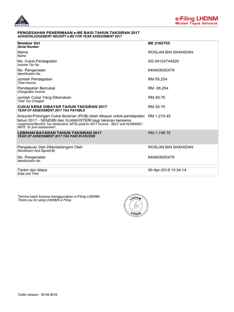 Jika pembayar cukai mengemukakan borang e be tahun taksiran 2016 pada 16 mei 2017 bncp tersebut akan. Untuk maklumat lanjut sila hubungi hasil care line 1 800 88 5436 talian bebas tol lembaga hasil dalam negeri. Pembayar cukai boleh mula mengemukakan borang nyata cukai pendapatan bncp bagi tahun taksiran 2016 melalui e filing bagi borang e be bt p m mt dan tf boleh dilakukan mulai 1 mac ini. Tindakan sekiranya berlaku kesilapan pada borang.