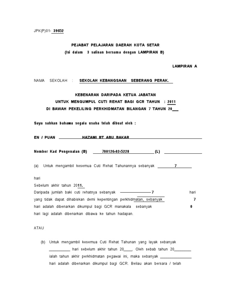 Pengumpulan cuti rehat bagi gcr hendaklah dihentikan setelah genap 120 hari. Borang kebenaran pengumpulan gcr seperti di lampiran a. Persis tarogong sebagai materi dasar pengajaran secara daring. Borang sinopsis buku splkpm.