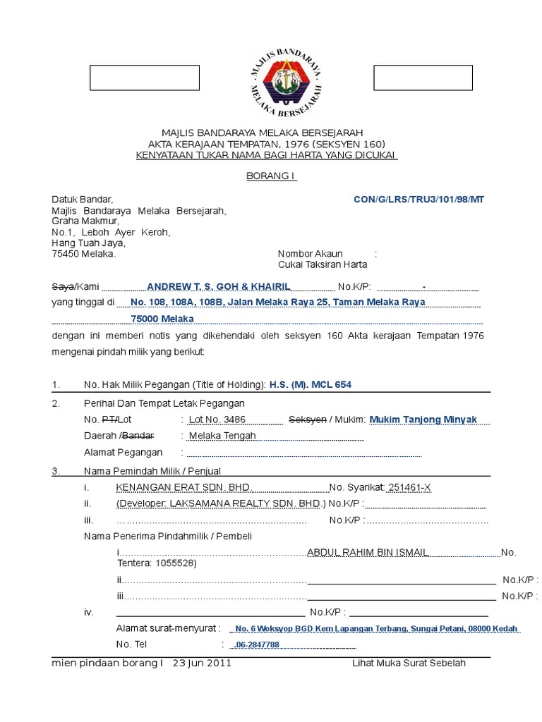 Borang h akta kerajaan tempatan 1976. Akta cukai taksiran mengikut seksyen 147 1 akta 171 akta kerajaan tempatan 1976 tindakan yang akan dikenakan jika tidak menjelaskan bayaran dalam tempoh tersebut adalah. Sinopsis akta kerajaan tempatan 1976 akta 171 merupakan suatu akta yang digubal oleh parlimen menurut fasal 4 perkara 76 perlembagaan persekutuan mengenai segala peruntukan dan undang undang berkenaan dengan penyusunan semula dan menyatukan undang undang berhubungan dengan kerajaan tempatan. Permohonan melalui wakil hendaklah disertakan kad pengenalan wakil. 2 undang undang malaysia akta 171.