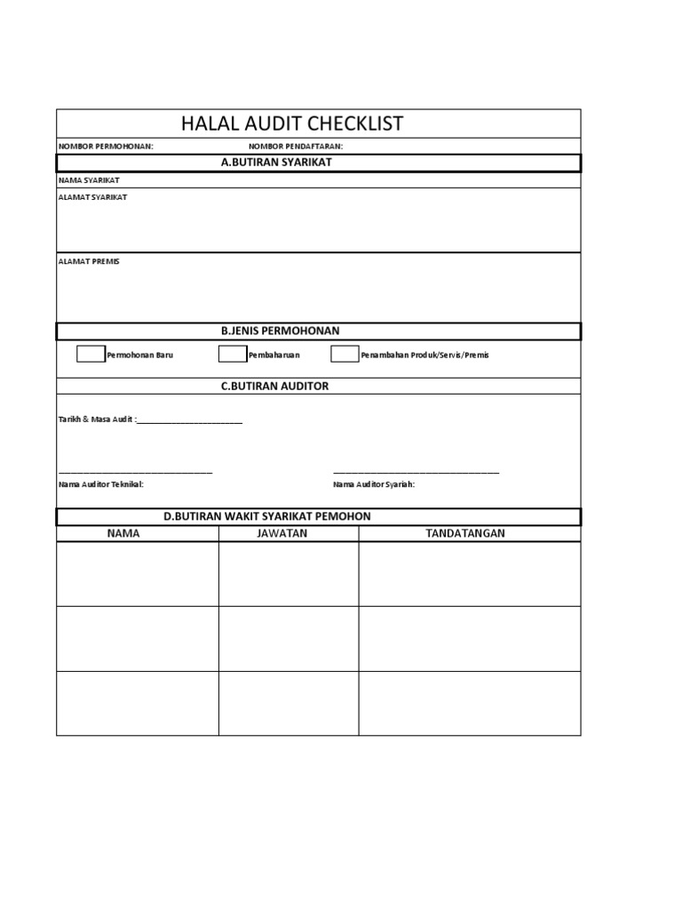 Bahagian kawalan makanan halal. Borang permohonan membaharui sijil halal permit halal borang f application for renewal of halal certificate halal permit form f 3. Tahun ini lppom mui kalimantan selatan kembali mengadakan pelatihan dengan menaikkan levelnya ke tingkat lebih tinggi dari sebelumnya yaitu internal audit sjh bagi fasilitator dan auditor halal internal latar belakang audit merupakan proses sitematik independen dan terdokumentasi. Menyerahkan dokumen pendukung dari bahan baku bahan tambahan dan bahan penolong yang digunakan berupa.