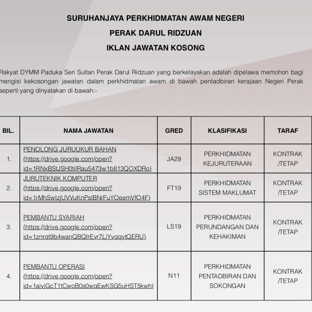 Decrease font size increase font size default font sizes. Borang berkaitan perkhidmatan pekeliling terkini dan maklumat lain. Untuk makluman spa akan membatalkan semua jawatan pemohon yang tidak memenuhi kriteria seperti di perenggan a hingga c. Jawatan kosong spa negeri perak.