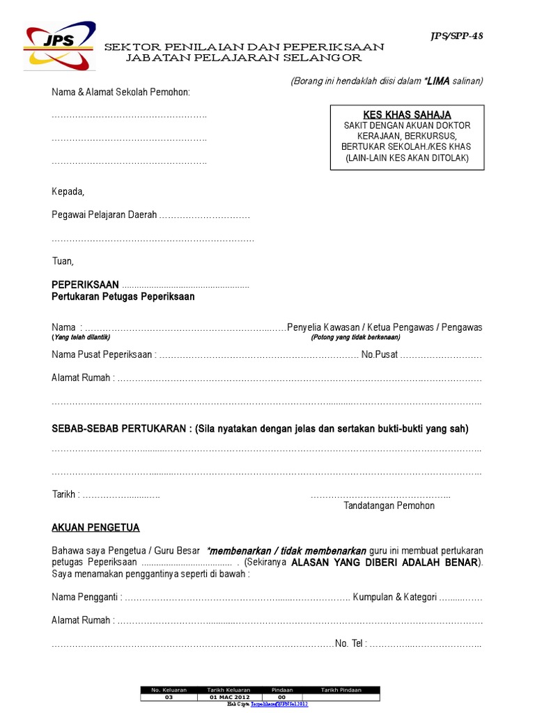 Kes khas sahaja sakit dengan akuan doktor. Kerajaan berkursus bertukar sekolah kes khas. Sektor penilaian dan peperiksaan jabatan pelajaran selangor borang ini hendaklah diisi dalam lima salinan nama alamat sekolah pemohon.