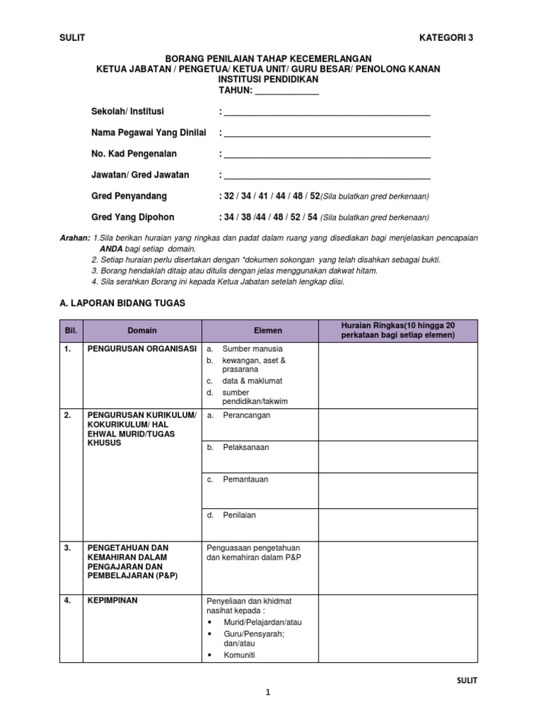 Borang penilaian tahap kecemerlangan ketua jabatan pengetua ketua unit guru besar penolong kanan institusi pendidikan tahun. Guru juga kene isi borang kc untuk dinilai sediakan semua dokumen yg berkaitan. Pegawaipegawai yang layak dinaikkan pangkat secara tbbk boleh dipaparkan dengan melihat modul carian iklan 21. Sekolah pengetua guru besar pengarah jpn a.