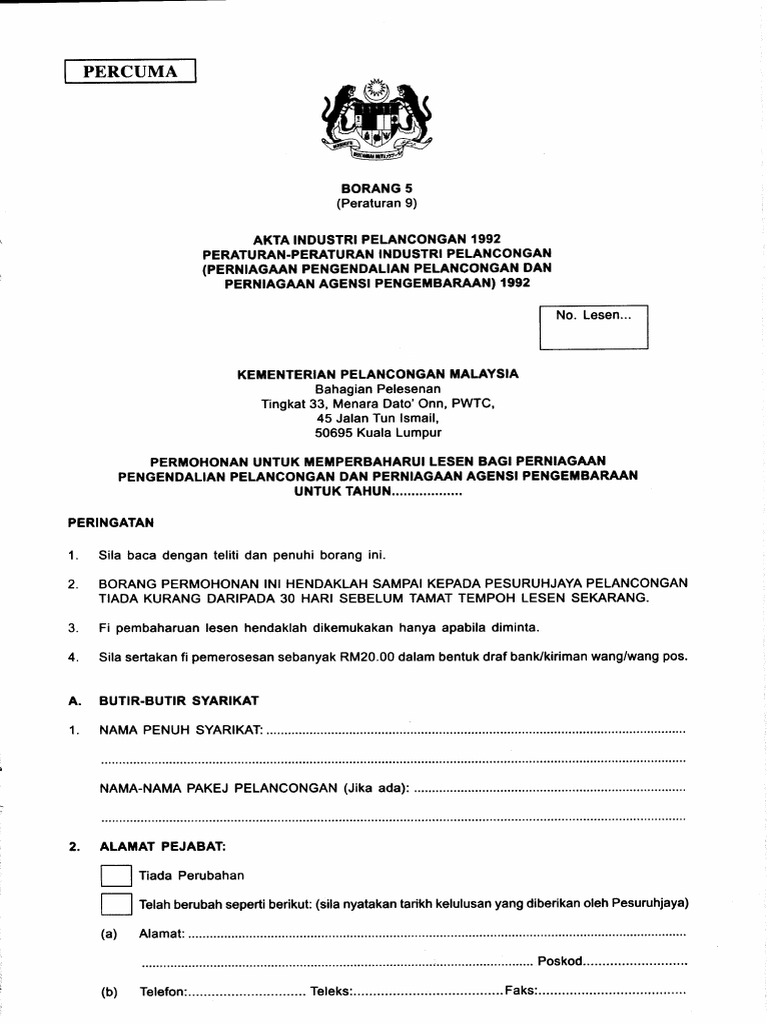 Borang pendaftaran umrah haji pakej haji makluman kursus haji borang pendaftaran haji badal haji ticketing tour package. Unit f 43 3 tingkat 3 b ock f platinum walki no. Borang 24 49 atau form of annual return yang terkini yang disahkan oleh setiausaha syarikat. A borang permohonan tambah bidang perniagaan pengendalian pelancongan luar negeri bagi umrah atau ziarah borang bu 1 b e info ssm yang terkini tarikh cetakan dokumen sekurang kurangnya 14 hari dari tarikh permohonan.