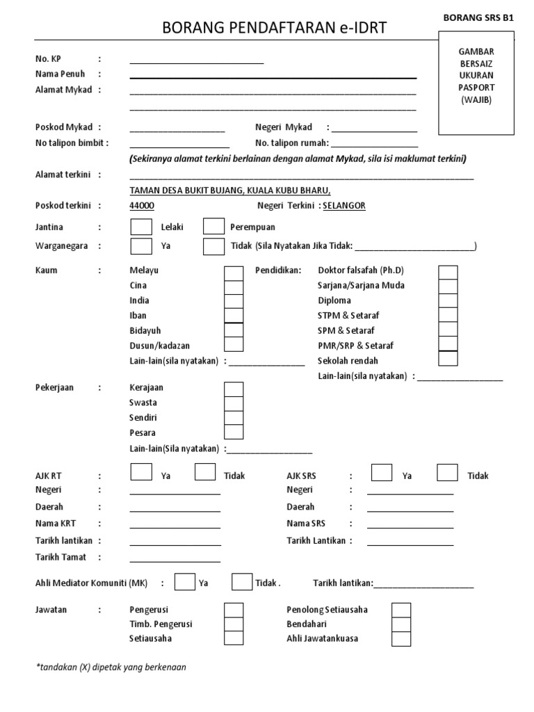 Salinan kad pengenalan anda. Borang pendaftaran e idrt no. Alamat mykad. Kepada semua warga taman saga taman sepadu sila kembalikan borang keahlian srs kepada ajk lorong jalan masing masing.