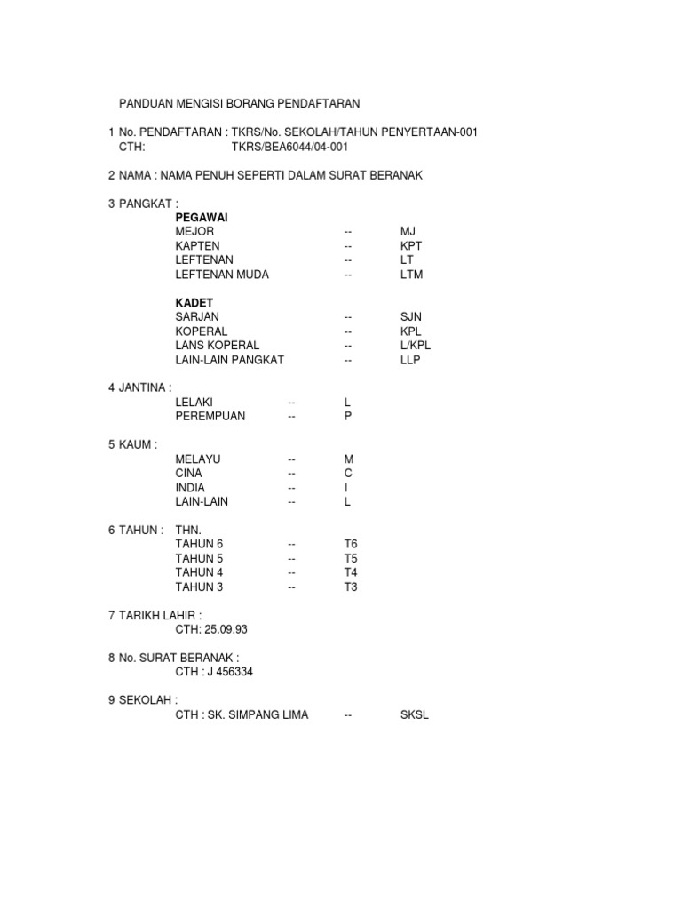 5 4 keahlian krs tkrs lucut serta merta apabila pelajar tersebut berhenti atau diberhentikan daripada menjadi pelajar berdaftar di sekolah institusi seperti yang dinyatakan di atas. 5 5 keahlian tkrs terbuka kepada semua pelajar tahap ii tahun 4 5 6 di sekolah kerajaan dan bantuan kerajaan. Kopral tkrs l kpl tkrs borang pendaftaran krs tkrs sila hantar 4 salinan format borang pendaftaran krs tkrs negeri. Diperlukannya dukungan dari pimpinan stkip bbg untuk melaksanakan.