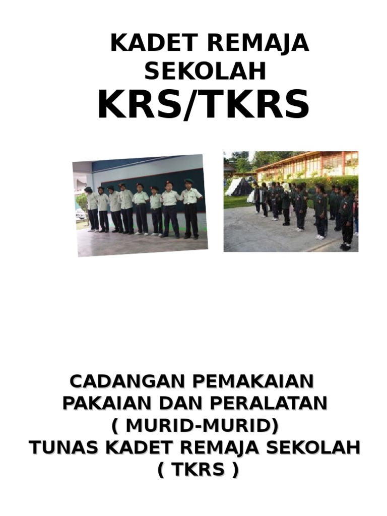 Untuk muaturun sila klik bahan yang diperlukan buku panduan krs dan tkrs panggilan tanda dan tatacara pemaikaian pangkat sistem data krs 1 02 statistik data krs borang borang pendaftaran sekolah borang permohonan pangkat murid borang permohonan pangkat pegawai borang ps pg pm tkrs kawad kaki panduan pengendalian pertandinggan kawd kaki syarat pertandingan kawad kaki tatacara pergerakan. Tunas kadet remaja sekolah tkrs perkara yang akan dibincangkan 2 latar belakang tkrs3 bidang aktiviti tkrs4 pemakaian tkrs krs5 pangkat untuk kedet tkrs krs6 kedudukan kedet dan pegawai tkrs di sekolah. Rujuk buku panduan krs tkrs m s 98 101. Guru pemimpin jurulatih.
