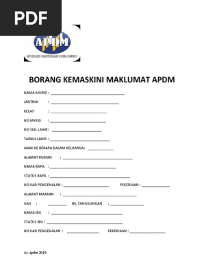 Borang kemaskini apdm. Borang maklumat murid 1. Untuk login ke dalam sistem ini klik pautan di bawah ini. Selain itu guru kelas atau guru mata pelajaran perlu mengisi data kehadiran. Download borang maklumat murid apdm 2019 january 16 2019 0 comments.