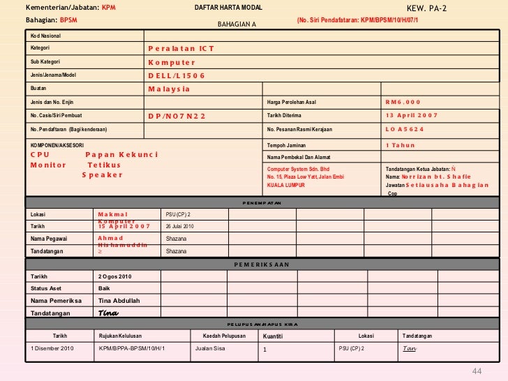Borang kew 44. Kew ps 14 lampiran d setiap suku tahun bagi semua kategori stor. Borang permohonan capaian pengguna dan had kuasa ibu pejabat ho muat turun. 44 ditandatangani oleh pegawai yang diberikuasa memperakui baucer atas nama dua orang pegawai bawahan yang dilantik untuk menerima wang tersebut. Nombor siri pendaftaran aset.