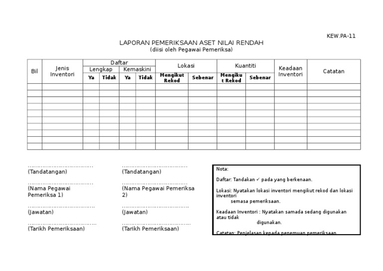 Menggunakan borang penerimaan aset alih kew pa 1 lampiran a. Potong mana yang berkenaan kew pa 10 borang aduan kerosakan aset alih bahagian i untuk diisi oleh pengadu. Kod kuantiti permohonan pegawai pelulus catatan perihal stok. 11 kew pa 11 laporan pemeriksaan inventori 4 473 views.