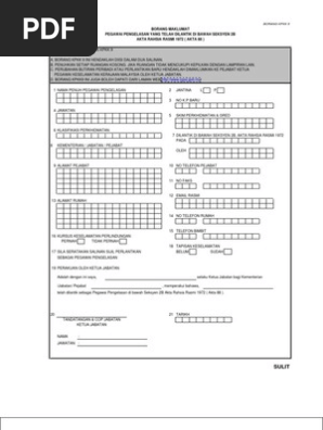 Borang kpkk 20. Jika ruangan tidak mencukupi kepilkan dengan lampiran lain. Penuhkan setiap ruangan kosong. Perubahan butiran peribadi atau perlantikan baru hendaklah dimaklumkan ke pejabat ketua pegawai keselamatan kerajaan malaysia oleh ketua jabatan. Borang permohonan yang tidak lengkap tidak akan diproses.