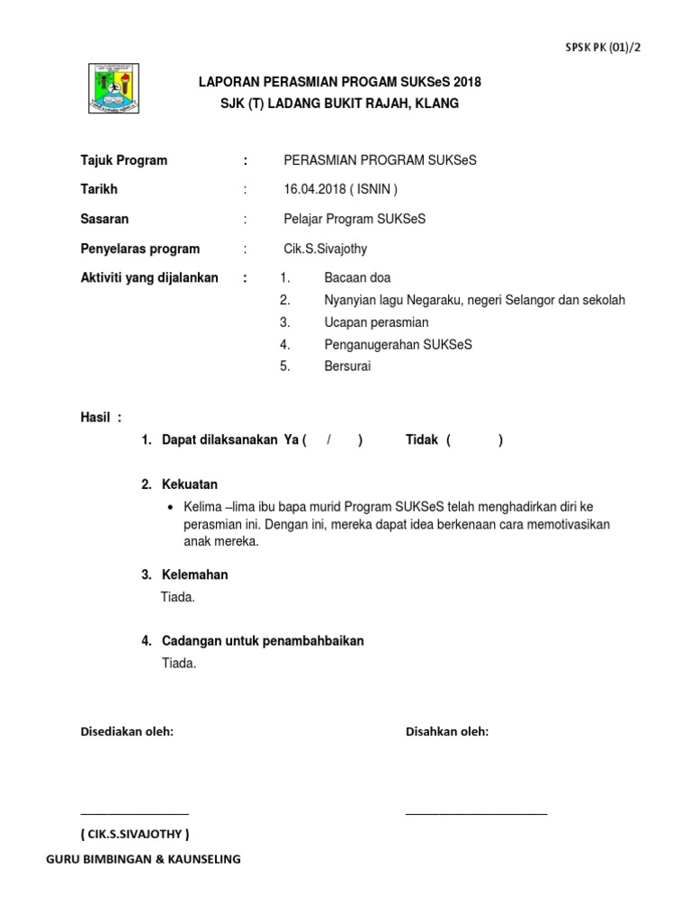 Disertakan lampiran atau borang keperluan spsk tahun 2017 untuk kegunaan pengurusan bidang bidang berkenaan dengan menggunakan spsk. Tuan puan dipohon untuk memuat turun dokumen berkenaan. File file size downloads. Pk 01 2 laporan pelaksanaan program panitia mp.