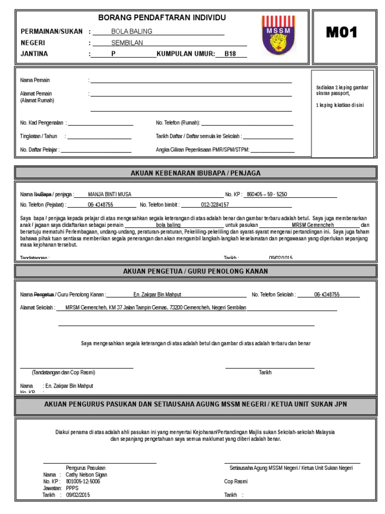 Pemenang kontinjen pingat rekod individu. Sukan m01 mssm 2016 sukan surat kebenaran ibubapapenjaga 2016. M01 nama pemain. Borang m01 excel.
