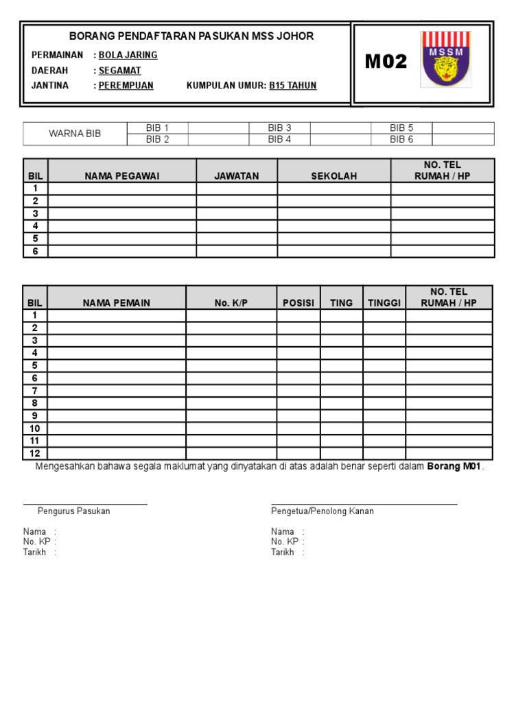 Borang M02 Bola Jaring