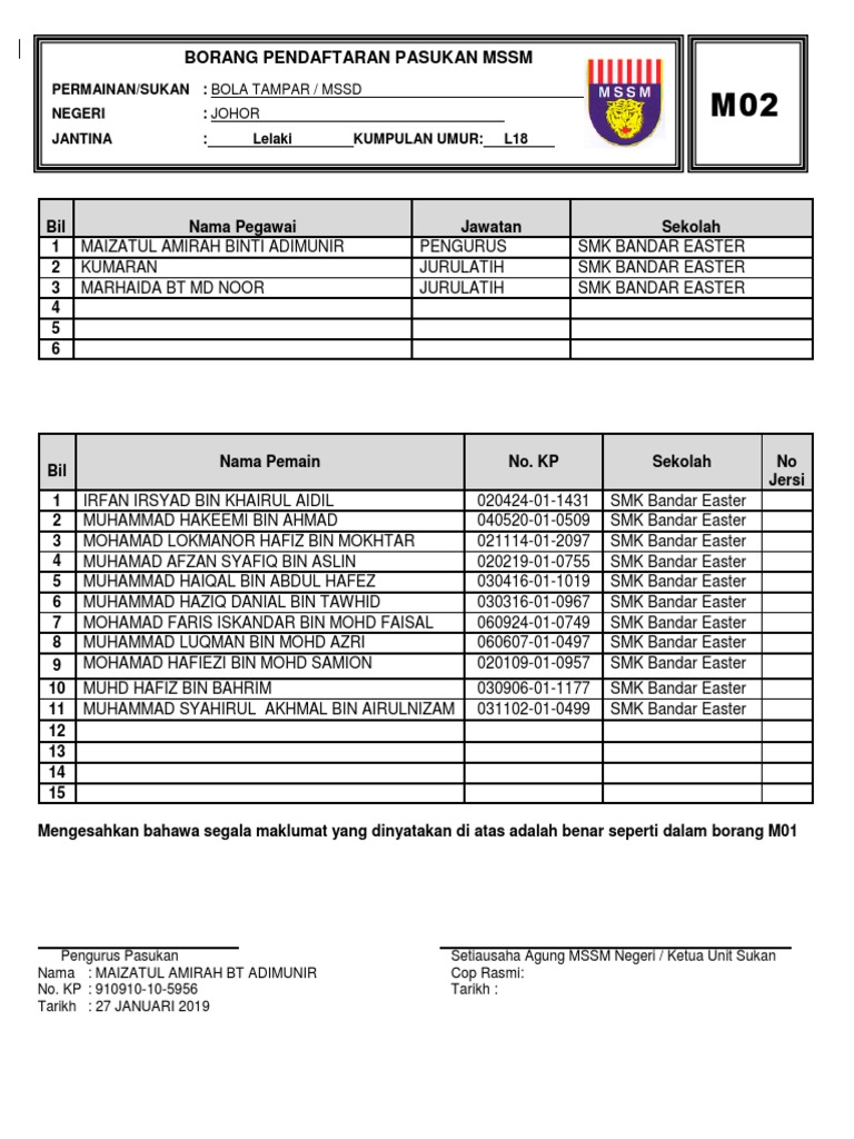 Borang M02 Bola Tampar