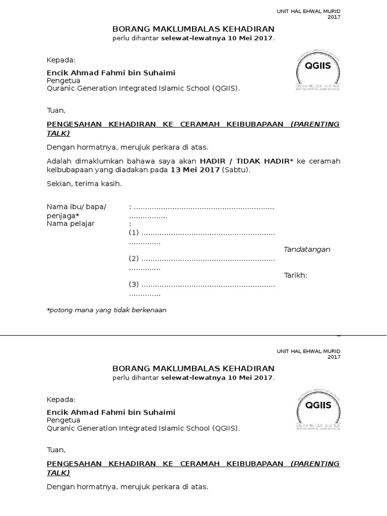Maklum balas garis panduan pelibatan ibu bapa sebagai sukarelawan di dalam kelas sdk inisiatif 66. Adalah dimaklumkan bahawa saya akan tidak dapat hadir ke program yang tersebut di atas. I lelaki perempuan a4. Taklimat ibubapa prasekolah 2017.