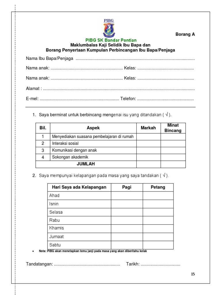 Borang maklum balas guru kaunselor dan maklum balas ibu bapa penjaga kem pintar 2 0 sekolah sekolah rendah daerah perak tengah tahun 2016 dengan hormatnya saya merujuk kepada perkara di atas. Borang keberhasilan 2016 30 mac 2016 guru prasekolah gaya skdoj xlsx. Borang maklum balas kehadiran ibu bapa. Borang maklum balas ibu bapa waris bahagian a al.