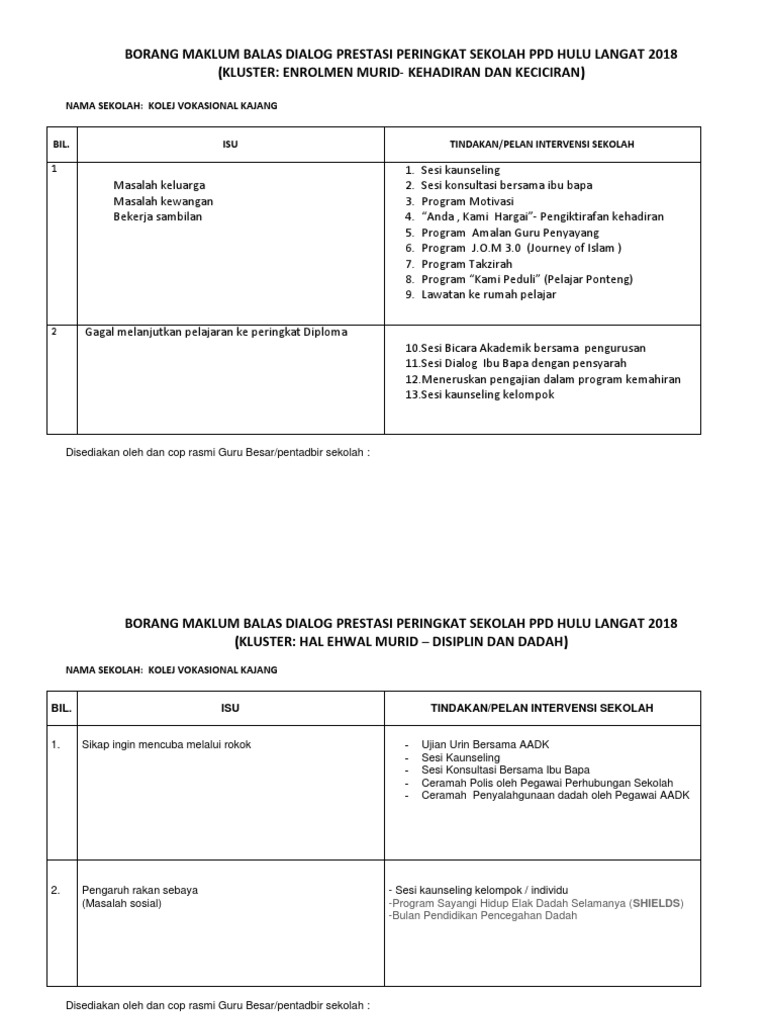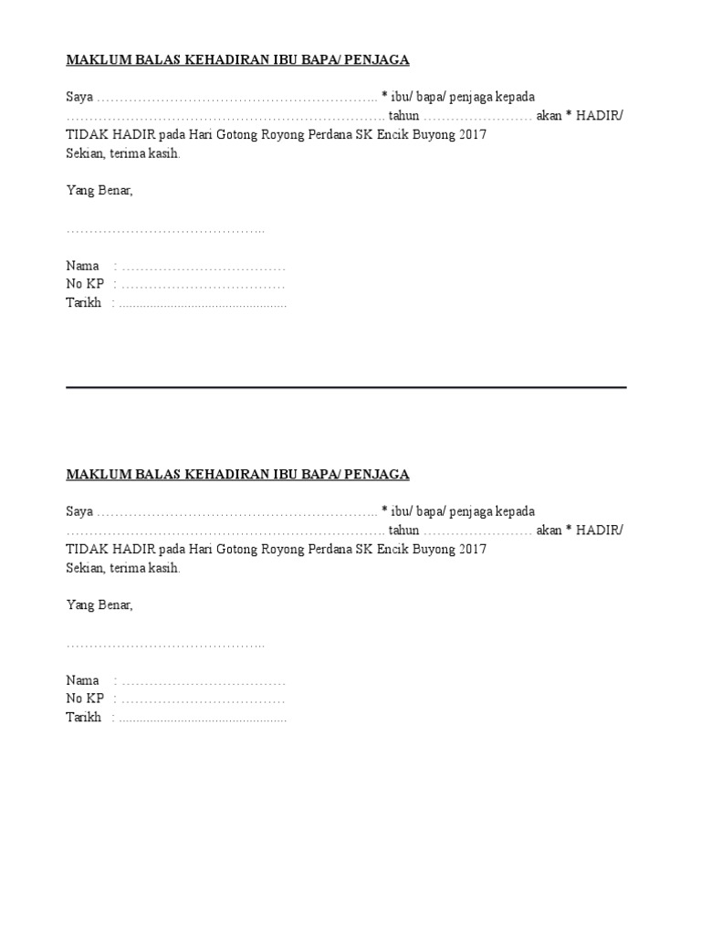 Borang maklum balas kehadiran ibu bapa. Borang maklum balas guru kaunselor dan maklum balas ibu bapa penjaga kem pintar 2 0 sekolah sekolah rendah daerah perak tengah tahun 2016 dengan hormatnya saya merujuk kepada perkara di atas. Borang maklum balas tuan pengesahan kehadiran ke karnival sehari bersama warga skks 2016 dengan hormatnya merujuk kepada perkara di atas. Staff ibu bapa orang awam sahaja. Tiada individu akan dikenal pasti dalam analisis ini.