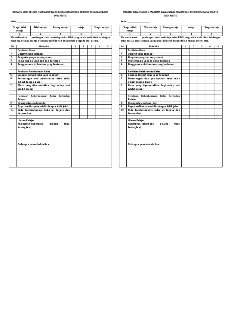 View 299695505 borang soal selidik program motivasi from faculty of 111 at university of selangor shah alam. Mereka telah memberi maklum balas yang menggalakkan dan memberi persetujuan kepada kami untuk menjalankan program ini. Tercapai kurang tercapai tidak tercapai 10 9 8 7 6 5 4 3 2 1 4. Sangat tidak setuju 1 tidak setuju.