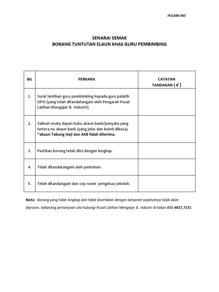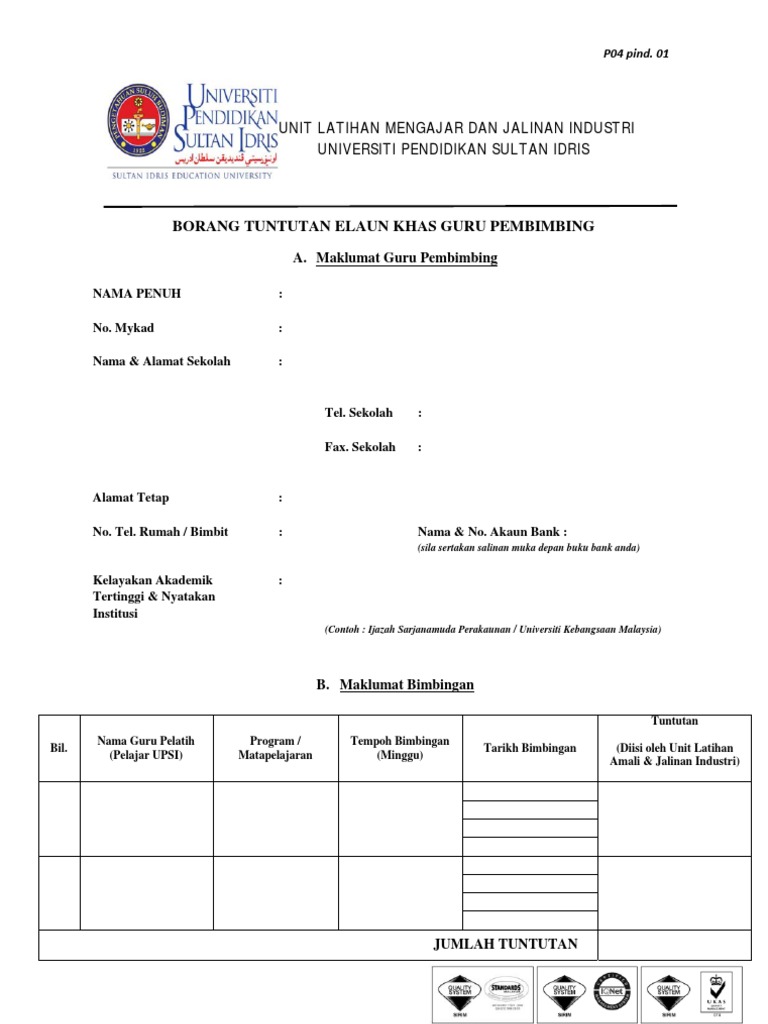Borang maklumat guru pembimbing upsi. Menurut surat pekeliling yang dikeluarkan oleh kementerian pendidikan malaysia no. Permohonan tuntutan elaun khas guru pembimbing. Untuk kegunaan pemeriksaan kesihatan bagi pelajar yang akan menjalani ppg 1 2 di sabah sekolah sahaja. Kejutera perisian dan teknologi maklumat gred 41.