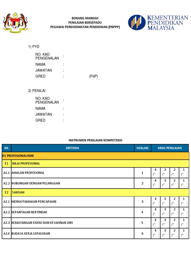 Jumlah penilaian keseluruhan borang markah penilaian kendiri. Berikut adalah instrumen penilaian kompetensi dan instrumen keberhasilan dalam borang markah skor yang dinilai mengikut kriteria dan aras penilaian. Borang keberhasilan guru 2020 di malaysia jikalau dahulu kalangan guru di malaysia akan dinilai melalui sistem laporan nilaian prestasi tahunan lnpt. Borang skor markah penilaian bersepadu pbppp.