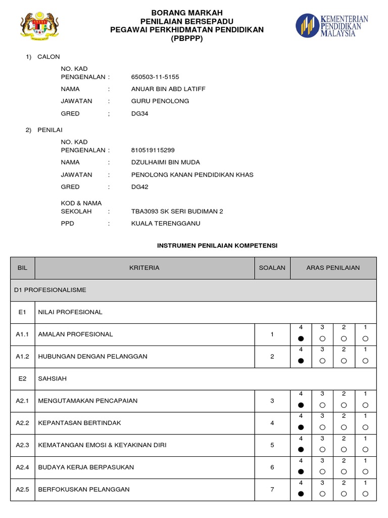 Pertama akhir nama pyd gred jawatan no k p. Penilaian bersepadu pegawai pendidikan pendidikan pbppp. Borang markah pbppp kosong. Jikalau anda penjawat awam jangan lupa untuk update sistem hrmis.