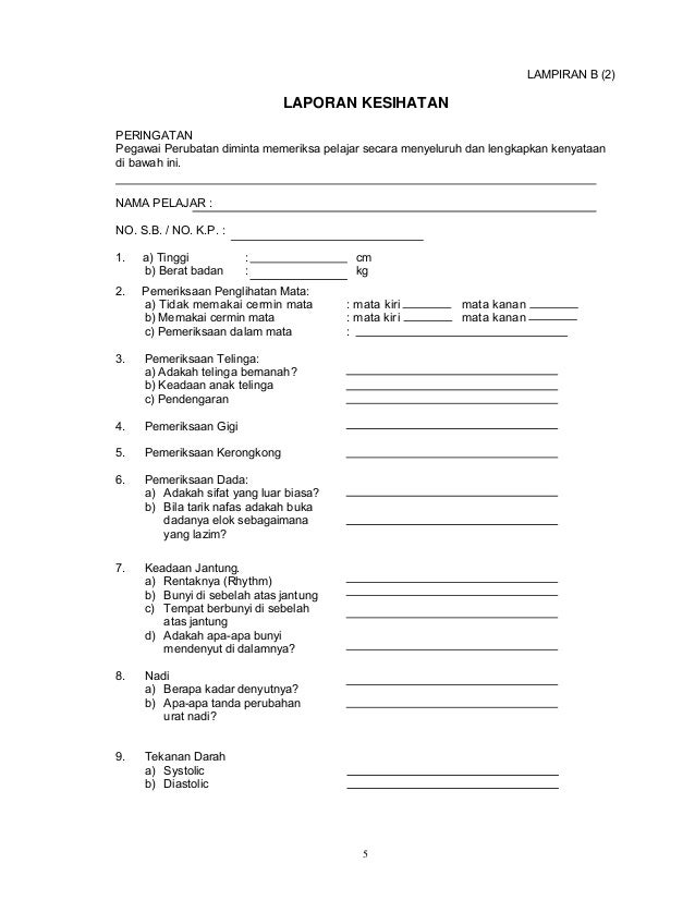 Borang medical check up mrsm. Untuk tujuan pemeriksaan pemohon hendaklah membawa mata jika pernah memakainya dan laporan kaca. 4 87 1 pemeriksaan doktor untuk perlantikan ke perkhidmatan kerajaan perintah am 23 a bab a 1973 calon bagi jawatan hendaklah mengisi bahagian a di bawah ini dan menyerahkannya kepada pegawai perubatan pada masa ia diperiksa bersama sama dengan surat berkenaan yang disertakan ini. Klinik swasta pun boleh. 1 2013 borang permohonan pemeriksaan perubatan untuk pelantikan ke dalam perkhidmatan awam pemohon hendaklah mengisi maklumat di bahagian a b dan dan menyerahkan borang ini c berserta surat tawaran pelantikan kepada pengamal perubatan berdaftar sebelum pemeriksaan perubatan dibuat.