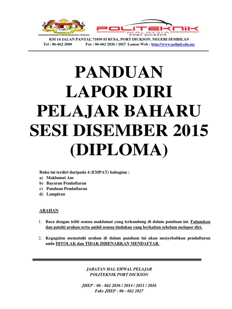 Untuk siswa politeknik port dickson ppd akan menjalani pemeriksaan kesihatan di kampus induk pada minggu siswa lestari. Untuk siswa politeknik port dickson ppd akan menjalani pemeriksaan kesihatan di kampus induk pada minggu siswa lestari. Siswa dikehendaki membawa slip temujanji kesihatan borang laporan pemeriksaan perubatan gambar ukuran pasport dan salinan laporan penyakit masalah kesihatan jika ada semasa hari temujanji pemeriksaan perubatan. Some are charging rm20 for this check up.