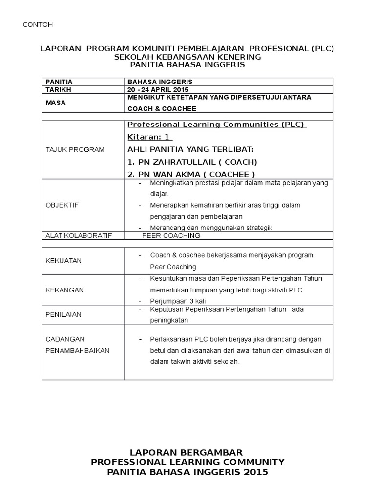 Elemen kbat dalam bina upaya mokhzani fadir. Strategi tips borang pelaksanaan plc plc adalah merupakan singkatan kepada professional learning community atau komuniti pembelajaran profesional. Laporan plc ke ppd. Antara tugas penyelaras plc sekolah.