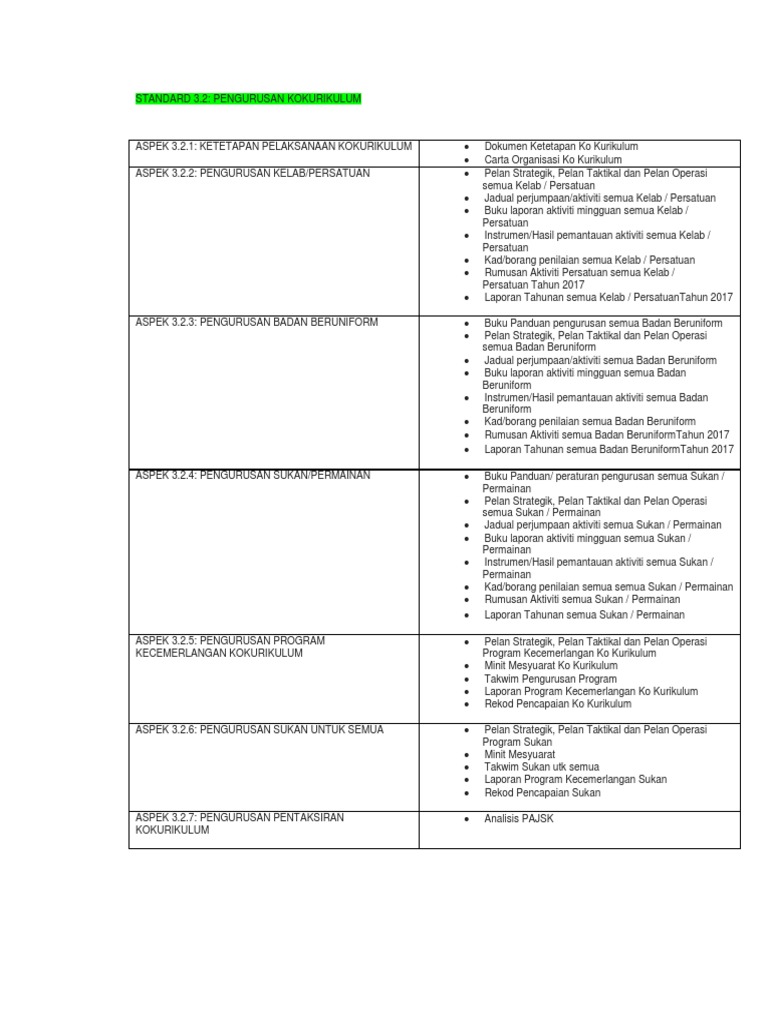 Namun begitu murid yang tidak hadir akan diambil makluman. 1 segak 2 kokurikulum. Pihak pentadbir sekolah melakukan pemantauan manakala guru guru dalam panitia semua mata pelajaran melakukan perbincangan dan penyelarasan berkaitan kaedah dan instrumen pentaksiran yang digunakan. Instrumen pemantauan pajsk jemaah nazir buku panduan pengurusan aktiviti kokurikulum men ren perkara berbangkit mengenai pemarkahan kokurikulum.
