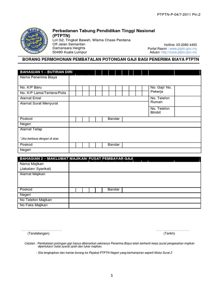 Borang Pemberhentian Potongan Gaji Tabung Haji
