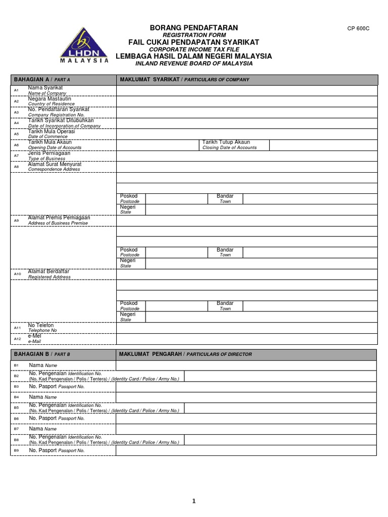 I nama nama syarikat seperti yang didaftarkan di pejabat syarikat suruhanjaya syarikat ma laysia. Permohonan pendaftaran pembayar cukai syarikat yang bermastautin di malaysia perlulah menghantar dokumen salinan borang 9 dan borang 49 kepada lhdnm sama ada melalui faks e mel atau muat naik melalui internet. Nombor rujukan cukai pendapatan majikan. 1 nombor rujukan cukai cp 5 pin.