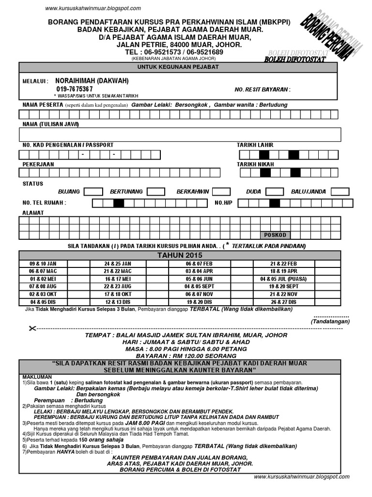 So bila dah settle interview kena dapat bayar untuk dapatkan borang pink pula. 07 2237873 07 2239062 emel. Laman ncr jais gov my menyediakan borang kursus pra perkahwinan berdasarkan modul bersepadu kursus pra perkahwinan islam mbkppi. 07 2282900 01 fax.