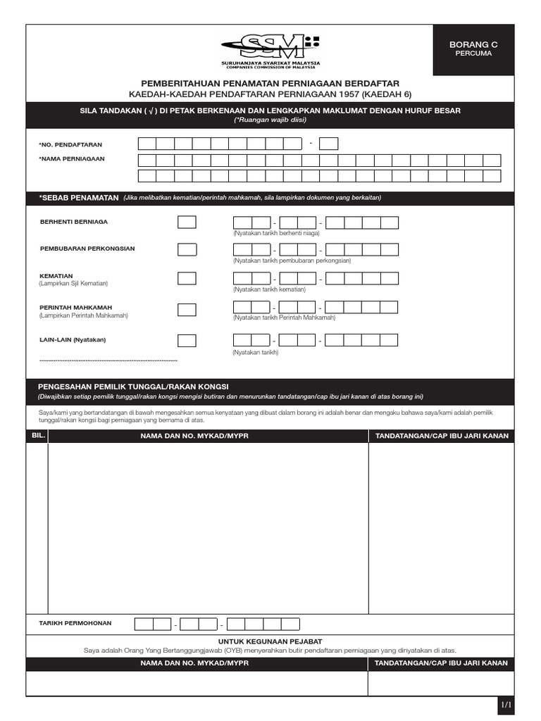 Borang pendaftaran perniagaan baru. Cara daftar ssm online pendaftaran perniagaan baru panduan terkini cara mendaftar perniagaan di suruhanjaya syarikat malaysia secara online atau kaunter meliputi borang permohonan dan fi bayaran yang dikenakan. Borang a percuma pendaftaran perniagaan kaedah kaedah pendaftaran perniagaan 1957 kaedah 3 sila tandakan di petak berkenaan dan lengkapkan maklumat dengan huruf besar ruangan wajib diisi nama sendiri menggunakan nama sendiri seperti di dalam mykad mypr sebagai nama perniagaan. Senarai kod bidang yang hendak didaftarkan mestilah selari sama seperti jenis perniagaan seperti di dalam ssm nota. C alamat utama perniagaan.