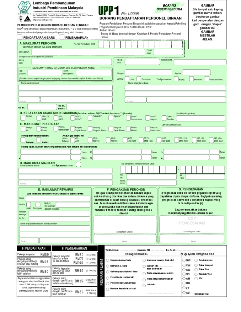 Borang permohonan sebagai penilai program pentauliahan pengurus pembinaan penyedia latihan bertauliah plb senarai nama penyedia latihan bertauliah plb cidb bagi kategori penyeliaan pengurusan dan cpd. Setelah keputusan diperolehi pemohon dikehendaki membawa bersama perakuan pendaftaran asal cidb. Syarikat sendirian berhad takrifan syarikat ini ditubuhkan di bawah akta syarikat 1965 dan sekurang kurangnya 2 orang diperlukan bagi menajanya ahli ahli rujukan permohonan dan panduan pendaftaran cidb. Merujuk kepada seksyen 25 1 akta 520 lembaga pembangunan industri pembinaan malaysia cidb.
