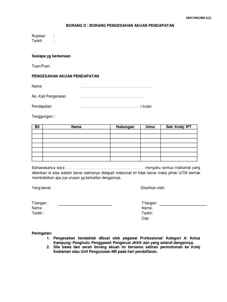 Borang pengakuan pendapatan uitm. Program semester no h p. Laman ini memaparkan maklumat berkaitan profil struktur perkhidmatan repositori dan direktori staf pejabat pendaftar serta lain lain maklumat penting untuk rujukan agensi kerajaan pusat tanggungjawab staf pelajar dan orang awam. Borang pengesahan akuan pendapatan rujukan. Borang pembayaran pendapatan bulanan melalui bank.
