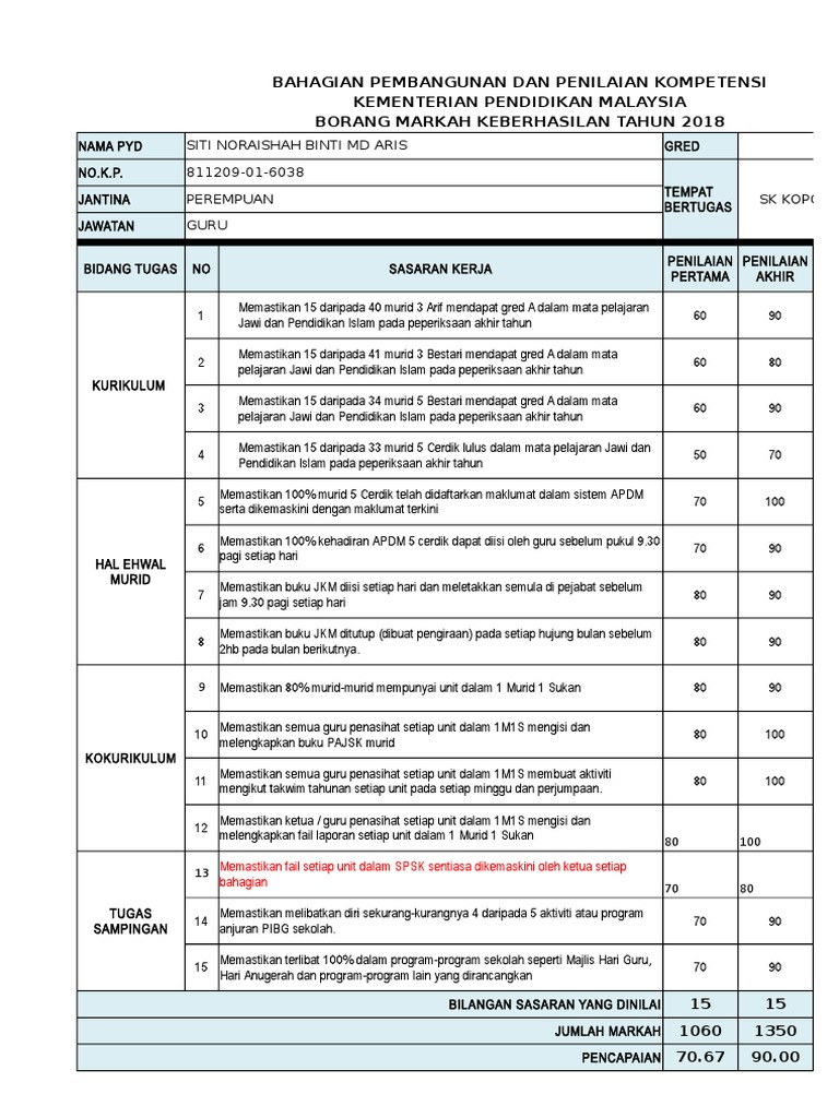 Penilaian peserta adalah melalui peperiksaan dan praktikum. Borang penilaian kursus khas. Merupakan satu pendedahan yang sangat baik untuk peserta. Analisis berdasarkan borang maklum balas diterima 71 69 orang yang hadir adalah daripada kumpulan pelaksana i dan ii gred 1 40 yang telah berkhidmat dalam tempoh 6 tahun hingga 15 tahun.