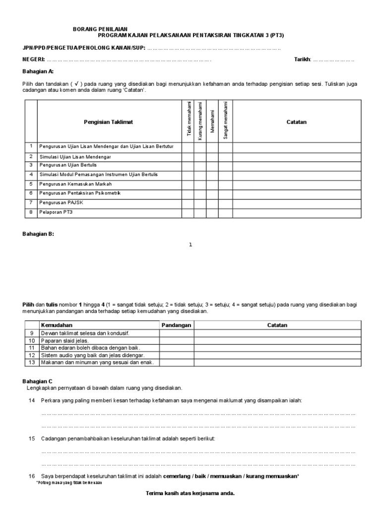 Borang Penilaian Pajsk