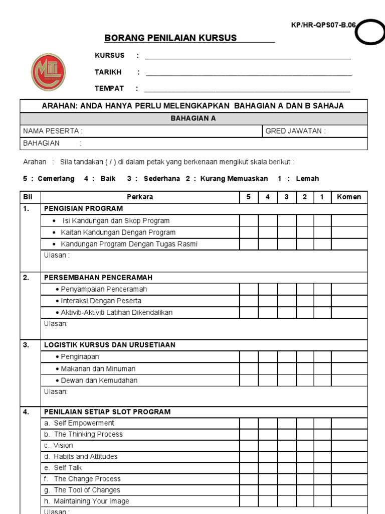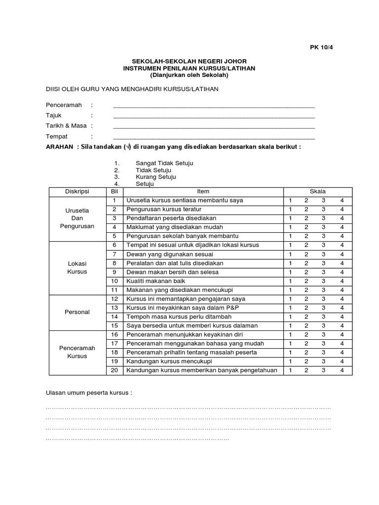 Borang Penilaian Peserta Kursus