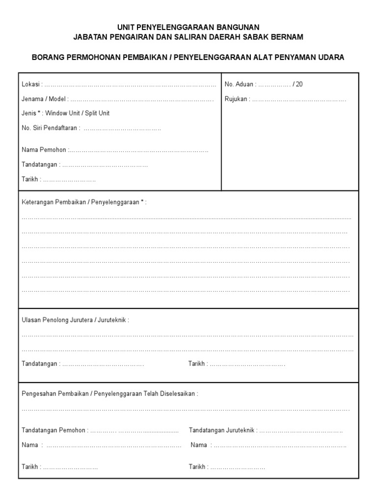 Borang penyelenggaraan aircond. Adakah anda tahu penyelenggaraan yang kerap pembersihan penapis boleh meningkat 15 dalam prestasi udara. Lengkapkan borang dan pengesahan tempahan akan dihantar ke alamat email. Chilled water system building automation system bas lampiran b. Kerajaan seri paduka baginda malaysia pekeliling perbendaharaan bil.