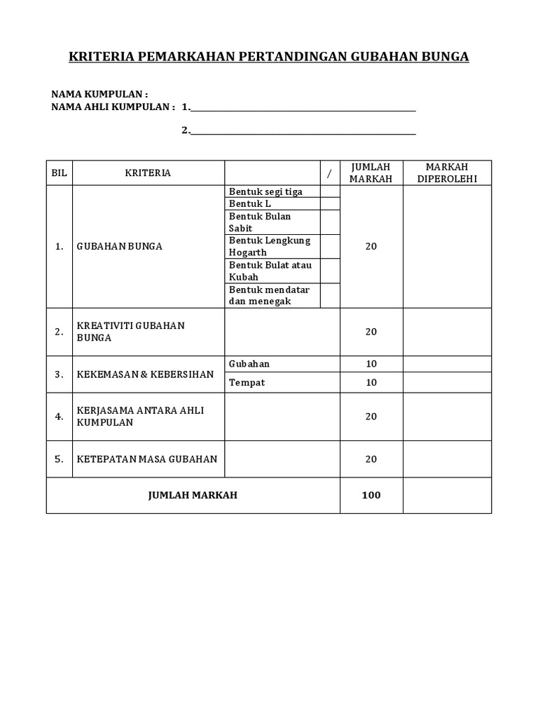 Borang permarkahan pertandingan memasak. Jump to page. Kumpulan kreteria markah min 1 max 10. Penyertaan terbuka kepada pelajar dan staf upm kecuali staf pusat kesihatan universiti upm 2. Perkhemahan perdana unit beruniform dan klinik 1m1s 2014.