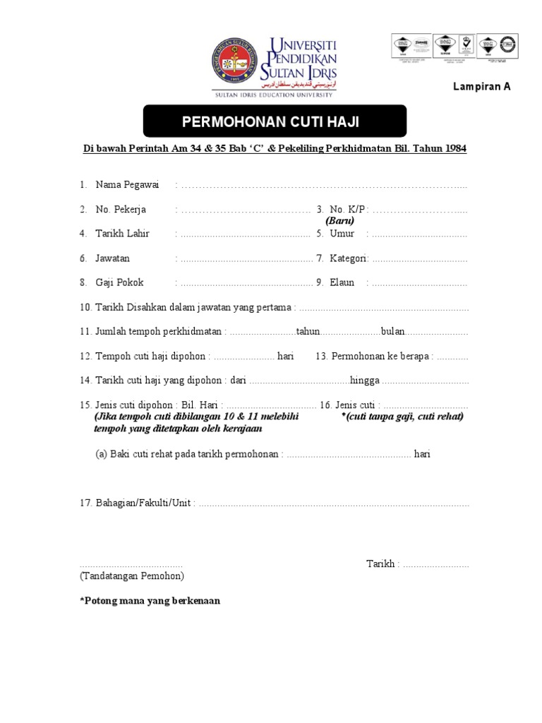 Borang permohonan cuti mengerjakan haji di bawah perintah am 34 35 bab c 5.